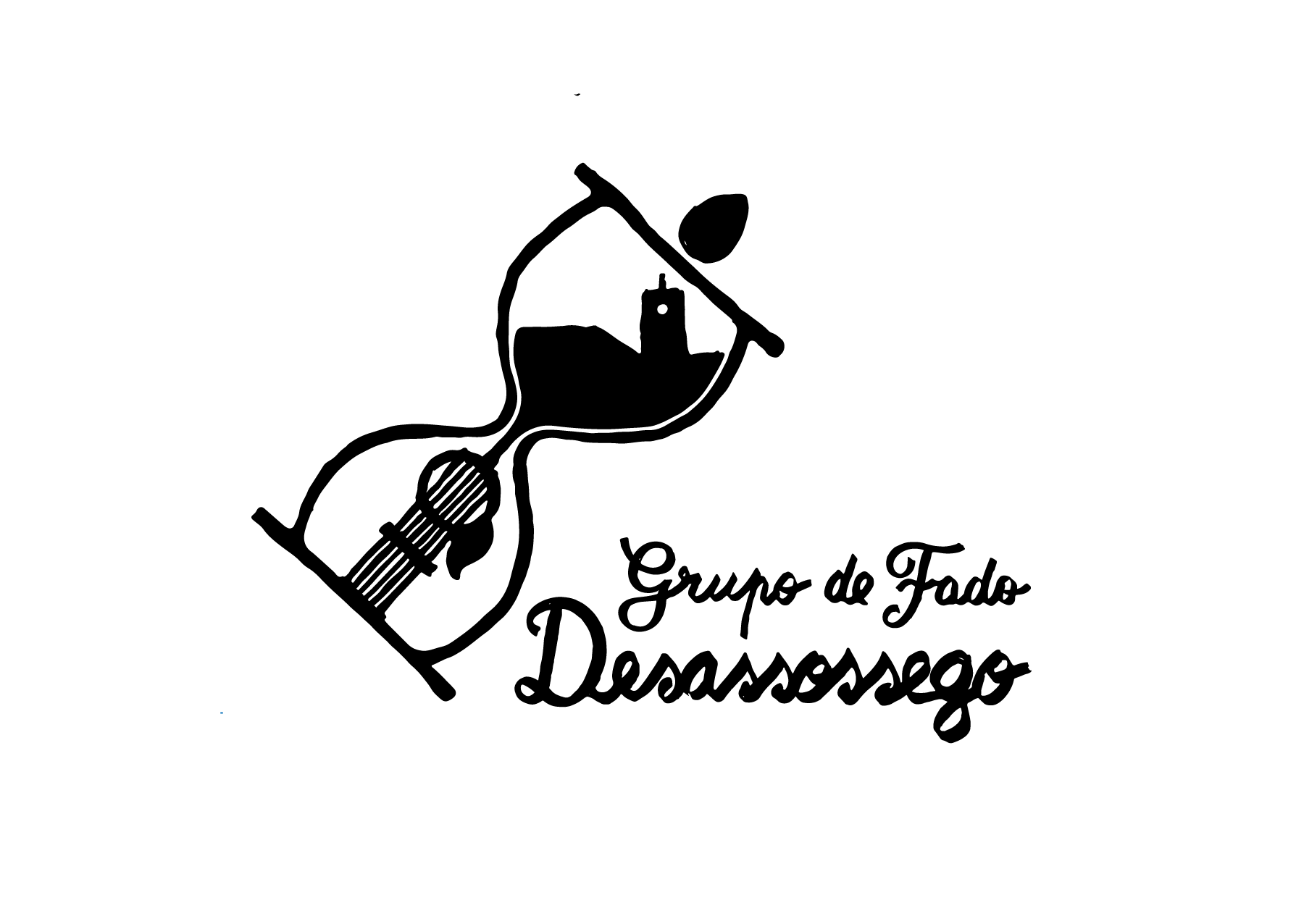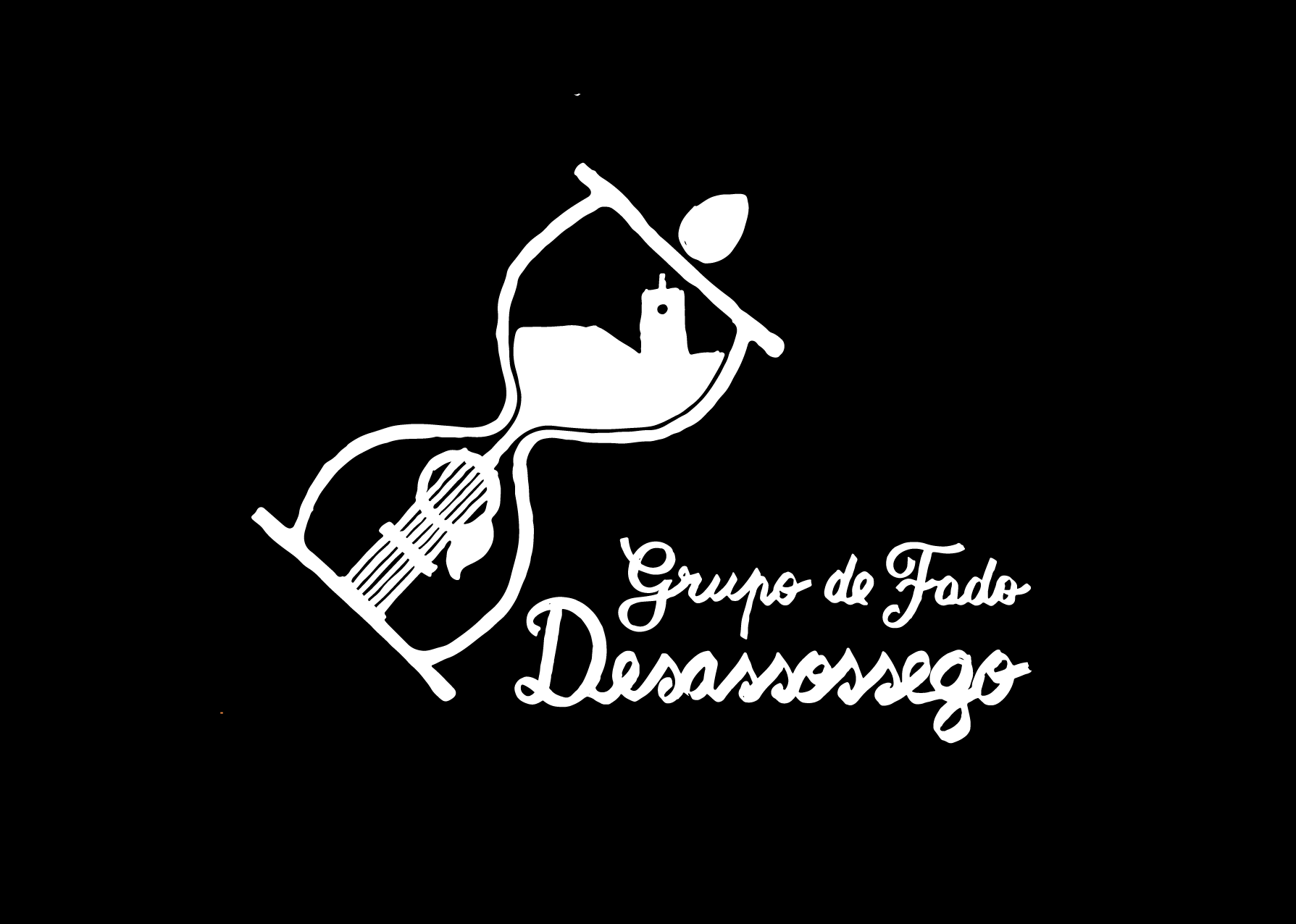 Em Coimbra é forte a tradição dos grupos de fado, ligados à Universidade. Muitos estudantes formam estes grupos que apresentam os temas clássicos do fado de Coimbra assim como as suas músicas originais. Existia um grupo de fado em-brionário que dava pelo nome de ‘Desassossego’. A proposta era a de lhes criar um logótipo que representasse o grupo e nome pelo qual se dava a conhecer. Para este projecto, senti que deveria optar por um estilo de desenho mais manual, que mimetizasse a linha manuscrita. Assim desenhei à mão as letras que mais tarde foram tratadas em computador. O símbolo do logótipo segue o mesmo estilo de traço e nele captei a essência do tempo desassossegado que escorrega na ampulheta que alberga, simultaneamente, a guitarra portuguesa e a cidade de Coimbra. O logótipo tem uma inclinação de 45°, inspirada no losango da Associação Académica de Coimbra, e pode apresentar-se em 3 formatos. Só o símbolo, só lettering ou uma combinação dos anteriores. As cores usadas são apenas o preto e o branco.